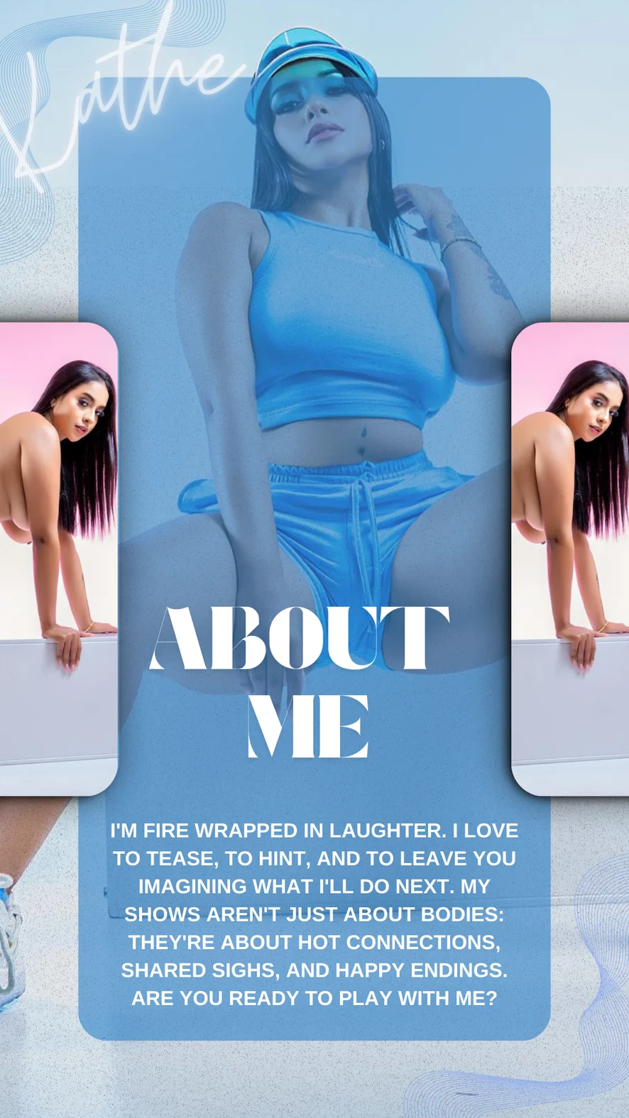 I'm fire wrapped in laughter. I love to tease, to hint, and to leave you imagining what I'll do next. My shows aren't just about bodies: they're about hot connections, shared sighs, and happy endings. Are you ready to play with me?